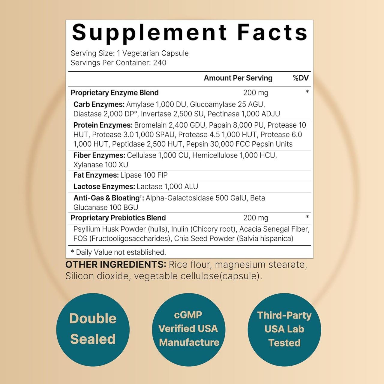 Digestive Enzymes with Prebiotics NatureBell 240 Veggie Capsules